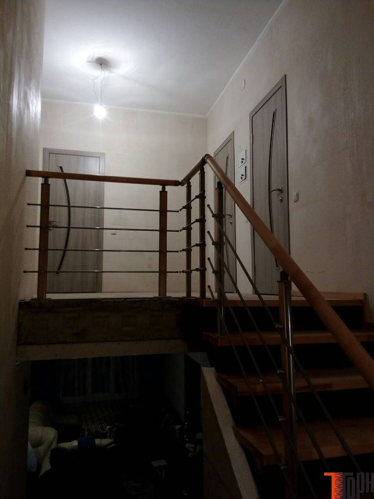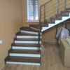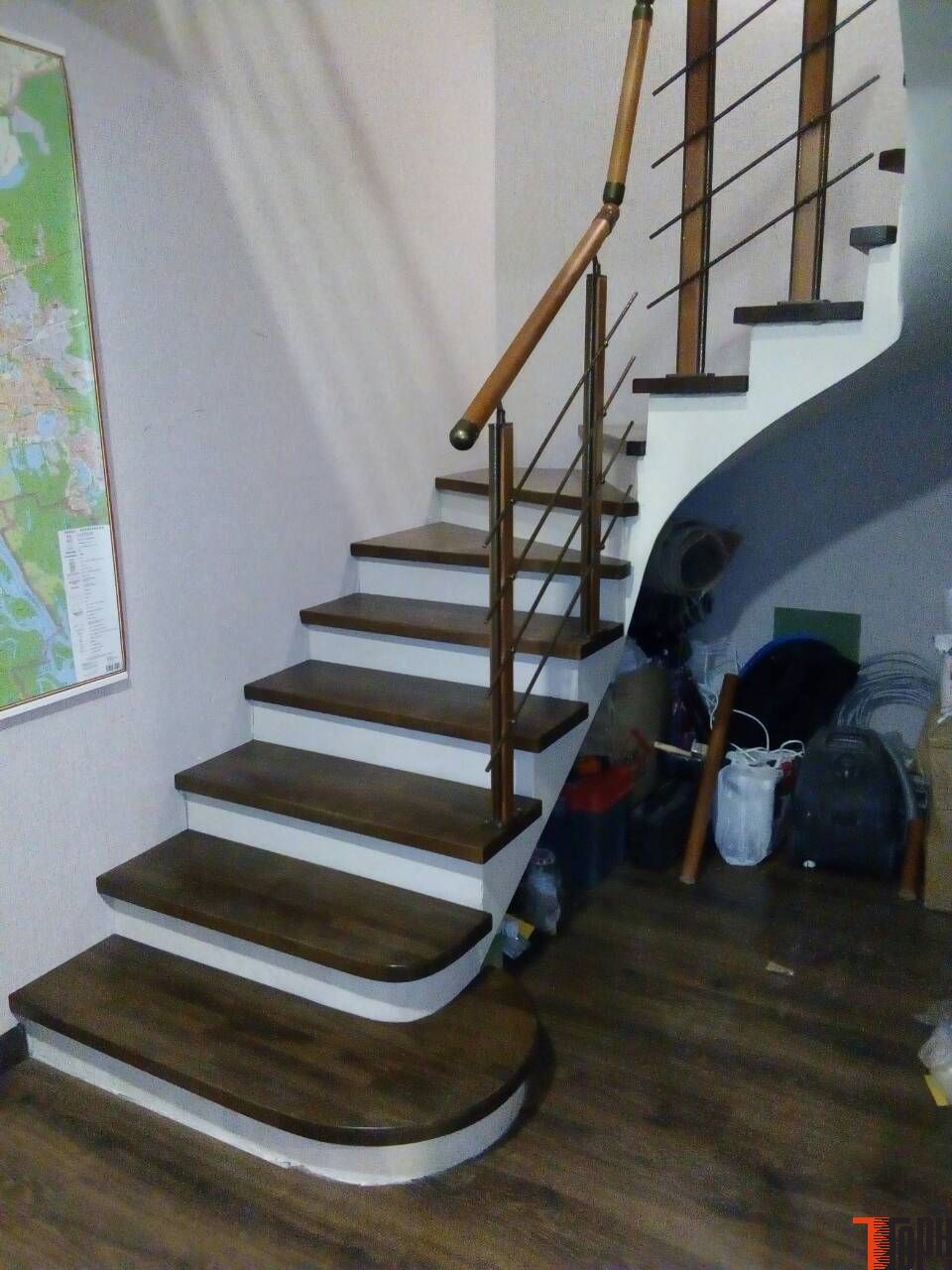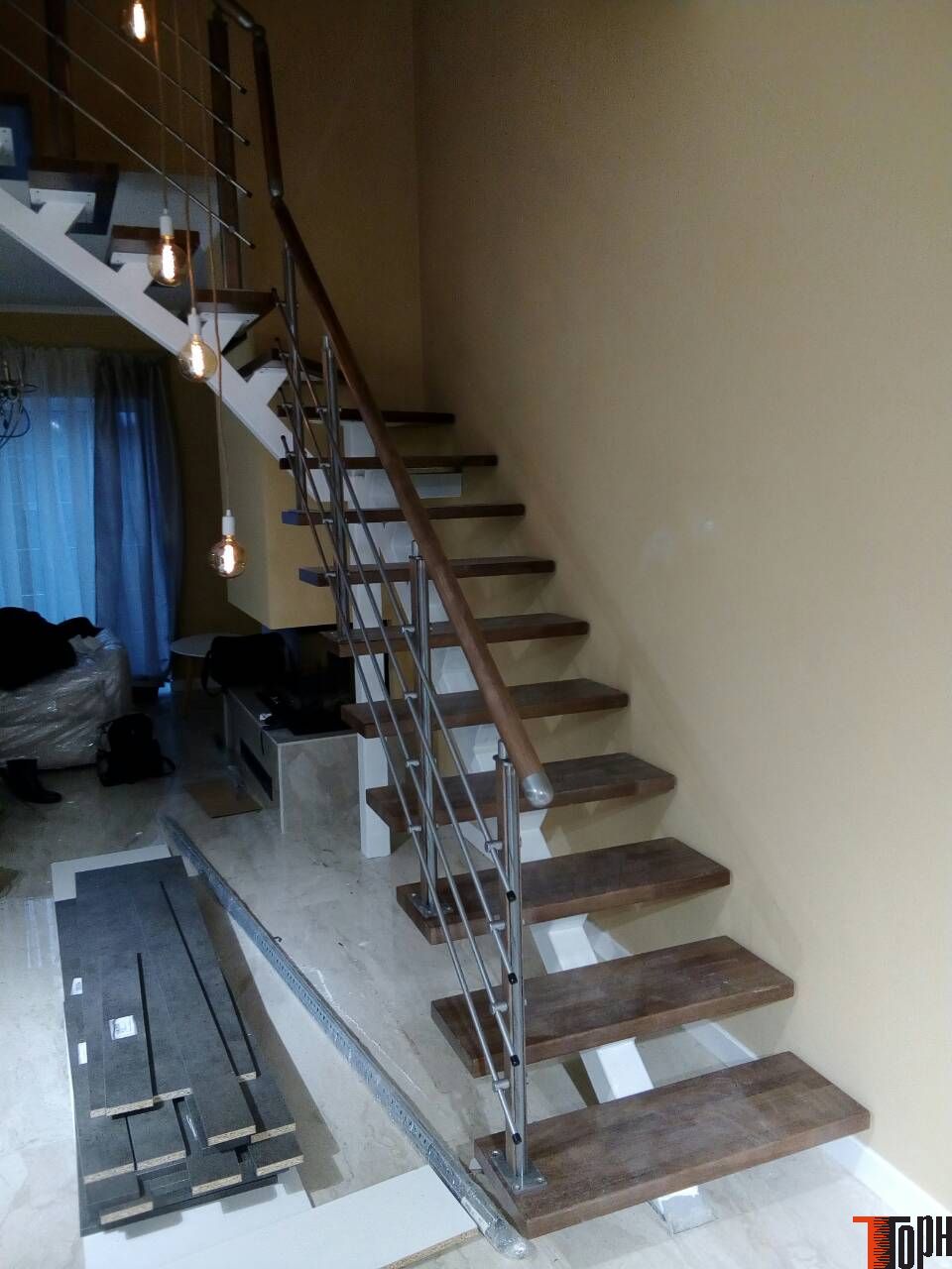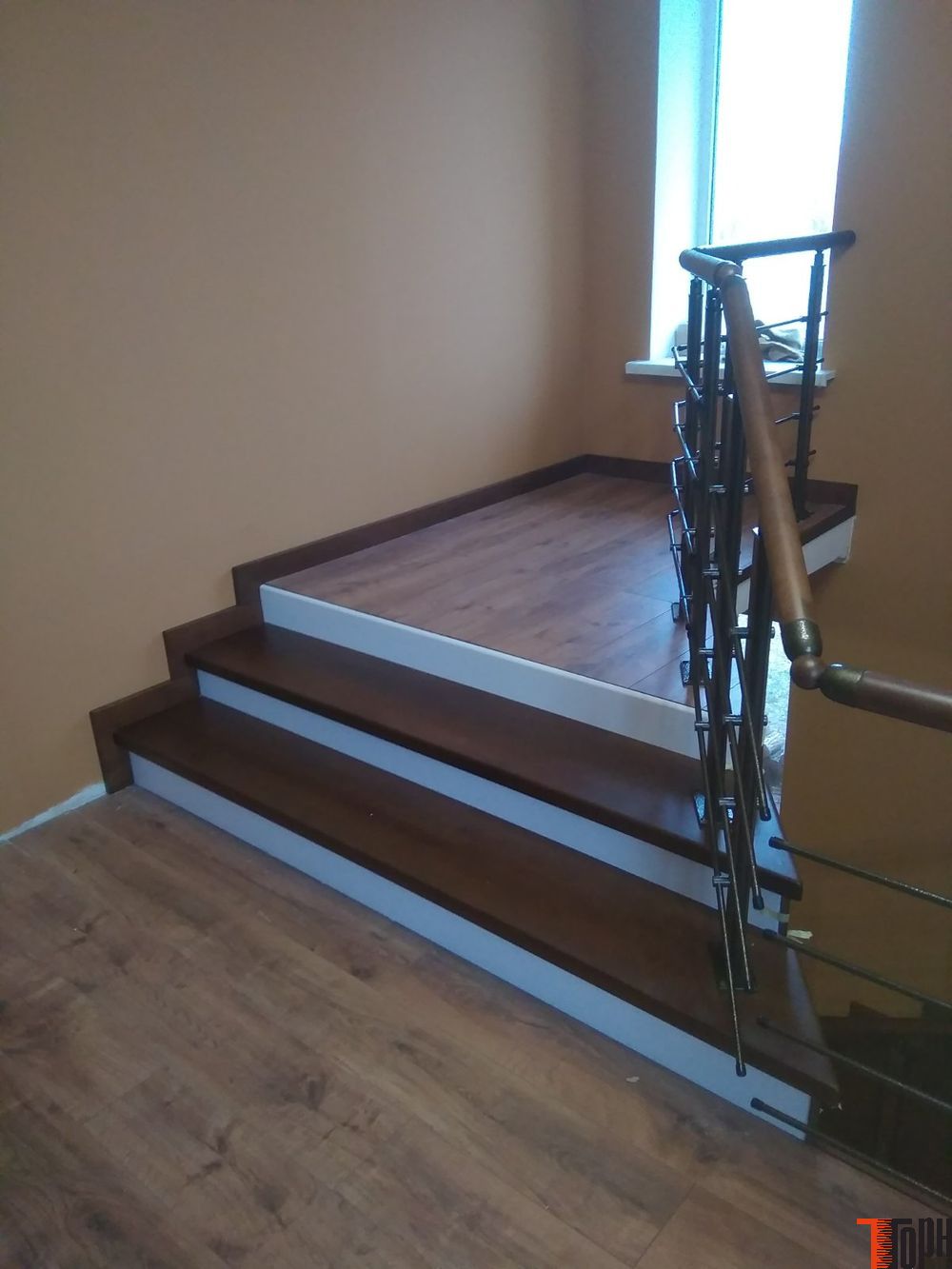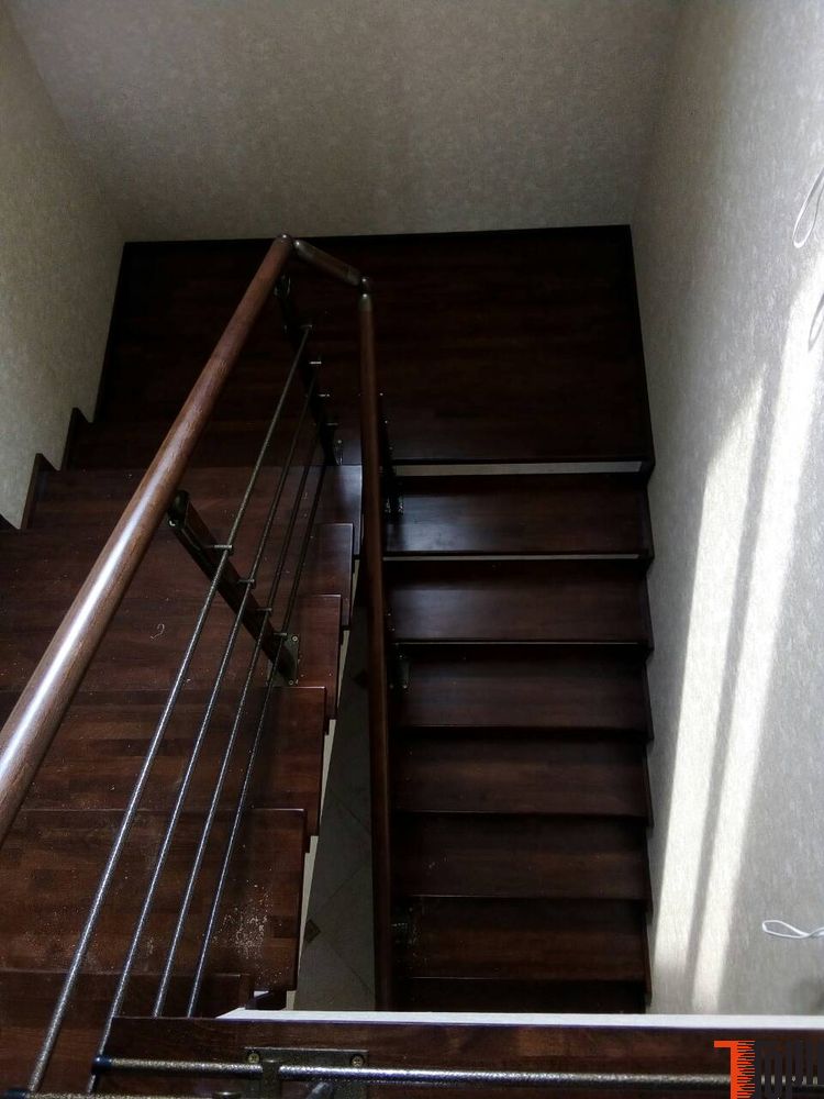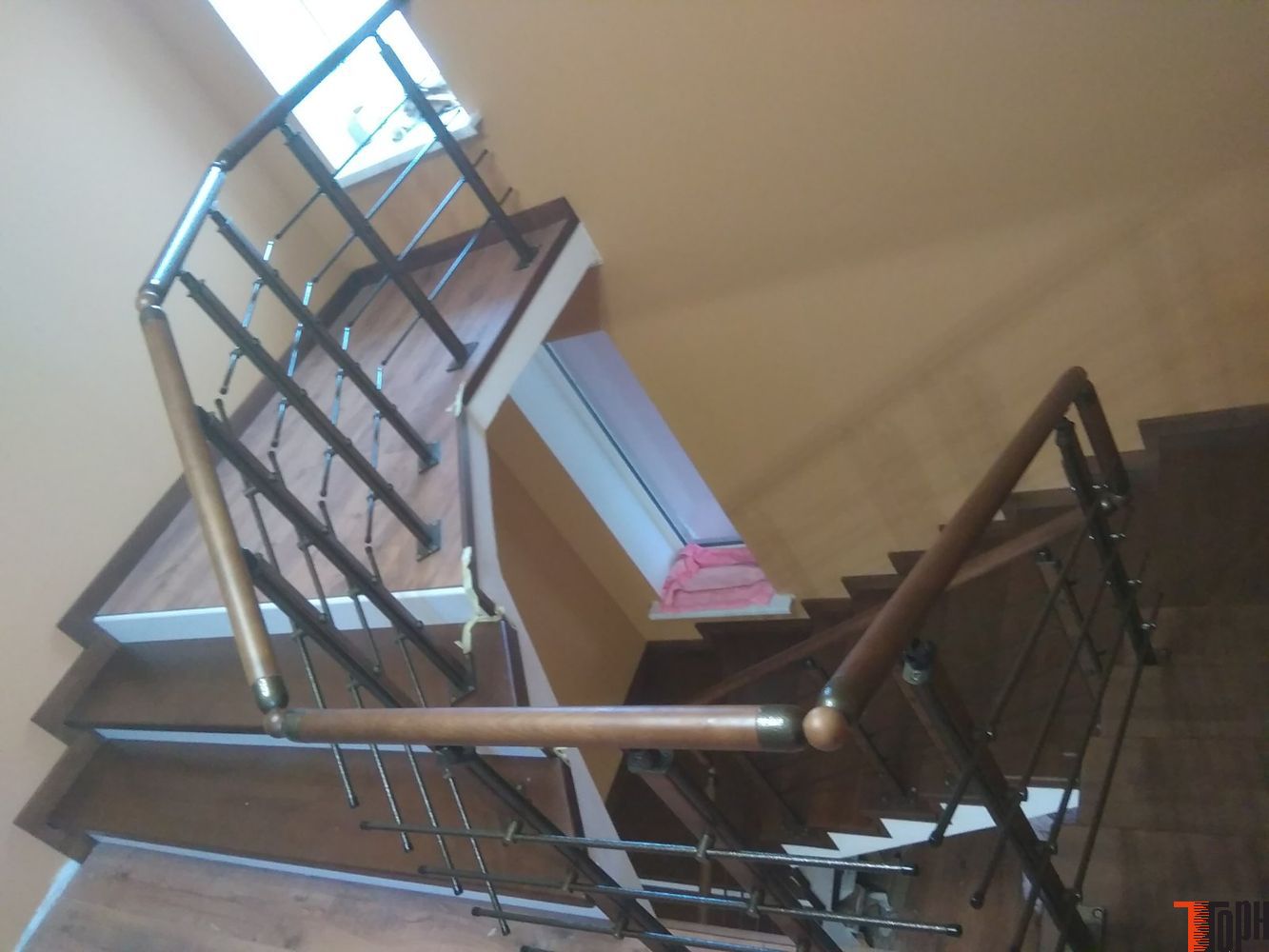 По материалу выбран бук сердцевина (в лаке бесцветном). Ограждение выбрано фирменное комбинированное (металл-дерево). Цена всего вопроса (по смете) – 39984 грн., а как с задачей монтажа справились мастера – видно по фотографиям.