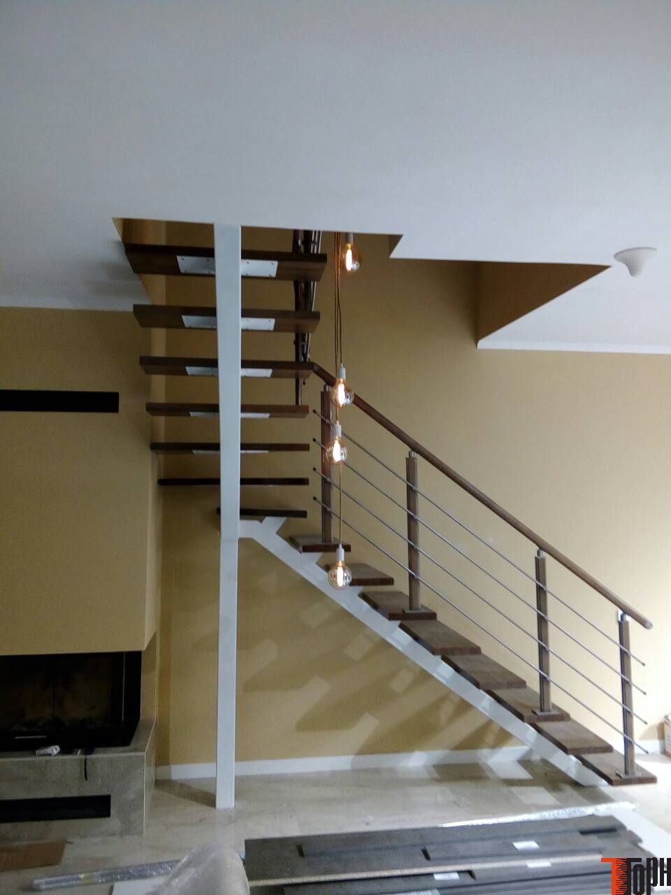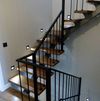 Компактная воздушная лестница класса "Стандарт" с разворотом на 270 градусов. К тому же висящая в воздухе. С деревянной конструкцией такое будет сделать тяжело. Глубина ступени - 260 мм. Высота подъёма 187 мм. Удобно и безопасно!