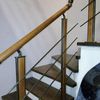 Загородный уютный дом для отдыха, и пожелания заказчика - совместить стили и цветовое решение лестницы с общим дизайном интерьера дома. Открытая модульная лестница с деревянным ограждением и косоурами в цвете "античное золото" вписалась просто идеально. А ступени, покрытые бесцветным лаком, добавили теплоты и уюта.