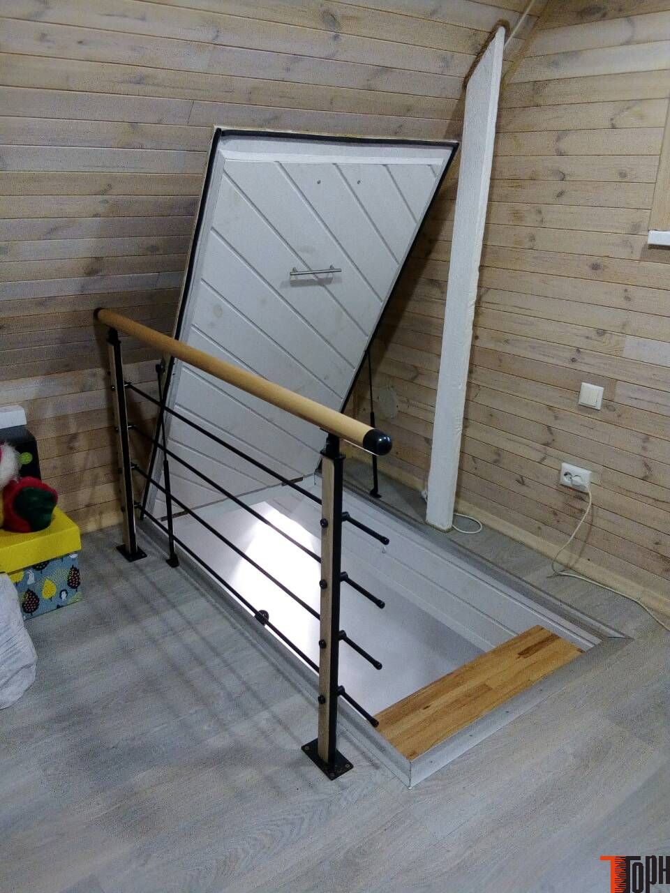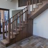 Небольшое пространство, широкая входная дверь, дверной проём под лестницей - вот задачи, которые предстояло решить. И наша продукция оказалась вновь на высоте. Забежная группа была сделана уже основного марша, но это не повлияло на её комфортность. Правда, пришлось врезать одну ступень в пол второго этажа, но так система стала только уютнее.