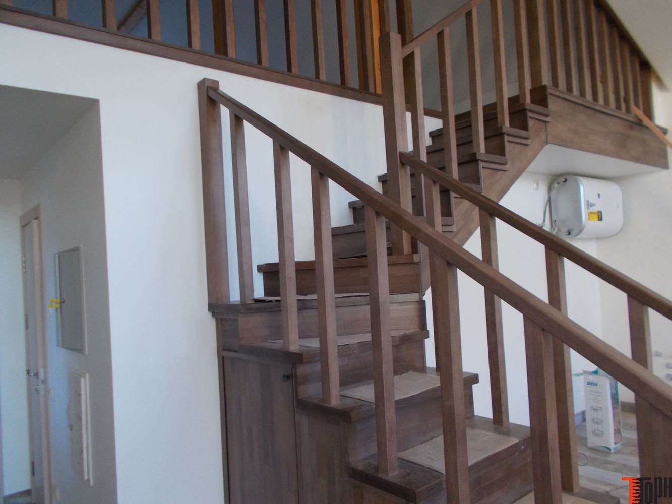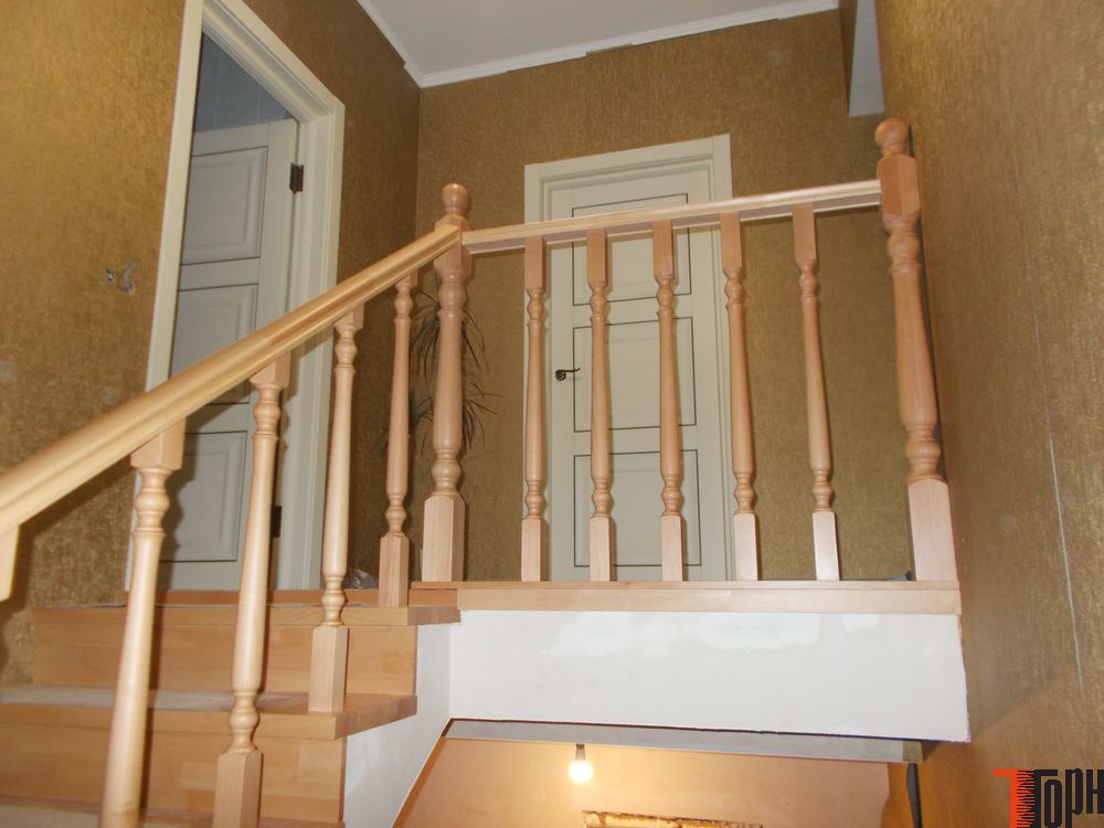 Был бетонный марш (не совсем ровный и далеко не удачный для нормальной и беспрепятственной работы) на 21 подъём (с переходной площадкой). Его нужно было обшить и сделать ограждение (балясины, перила). Ширина ступеней местами 1000 мм, а местами и до 1400 мм. Объект не из легких (очень много кропотливой и т.н. ювелирной работы), но как иногда говорят «больше хлопот – больше денег, и если действительно хороший мастер, для него нет невыполнимого. По материалу выбран бук сердцевина (в лаке бесцветном).
