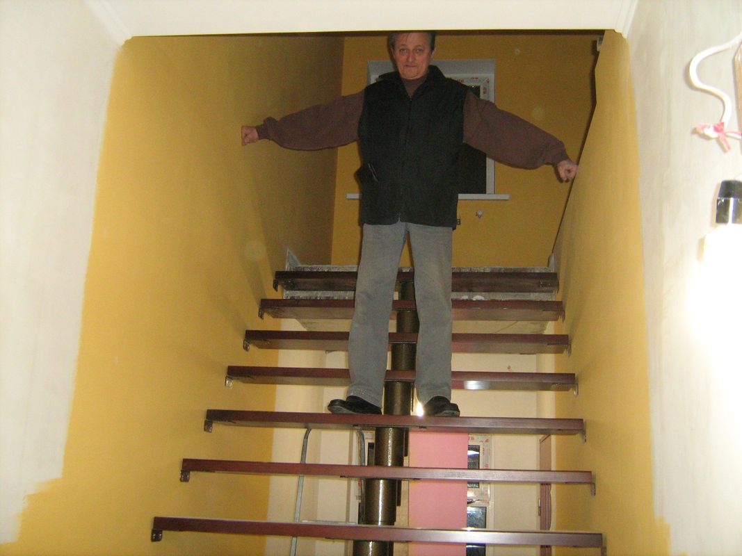 Итак, оставив очень маленький проём (например 150-160 см по длине) – вы «подписывайтесь» под вариант «без вариантов» - то есть только лестница типа «Гусиный шаг» с переменной проступью, которая по своей комфортности остаётся спорным вариантом.